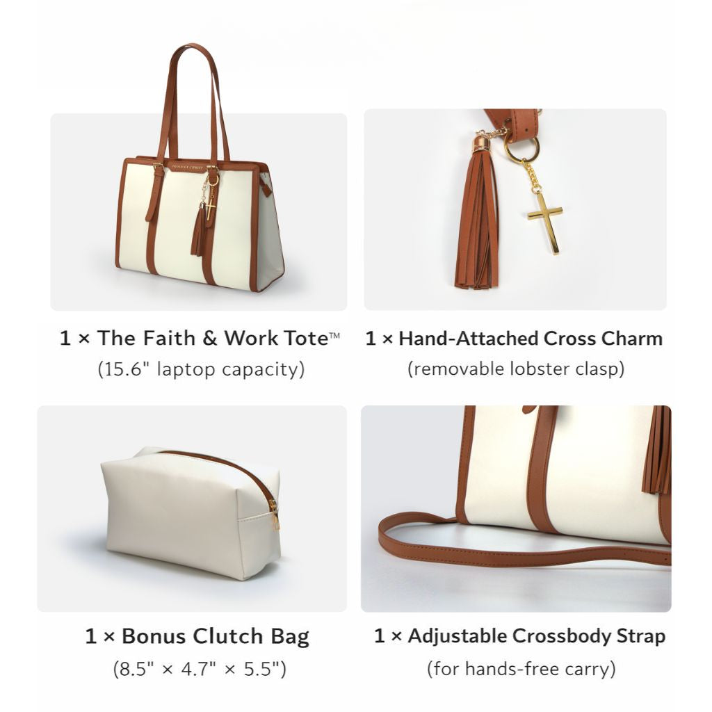 The Faith & Work Tote™ carries your daily essentials comfortably, without feeling oversized or bulky.